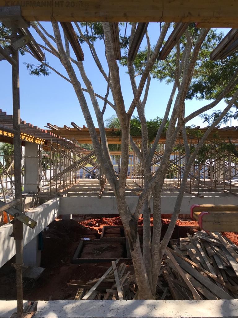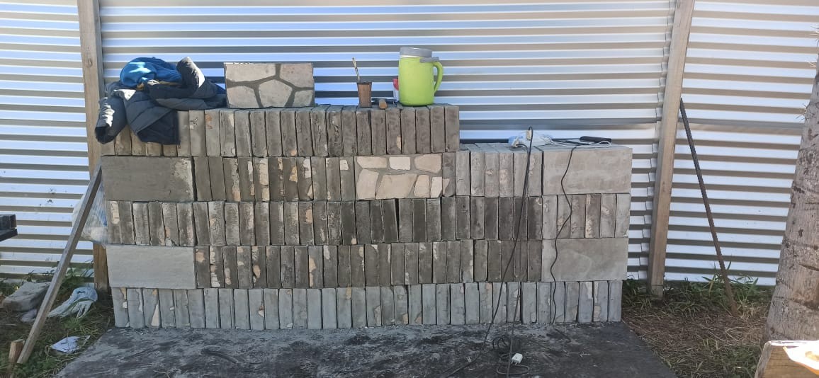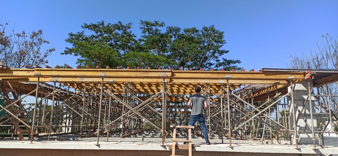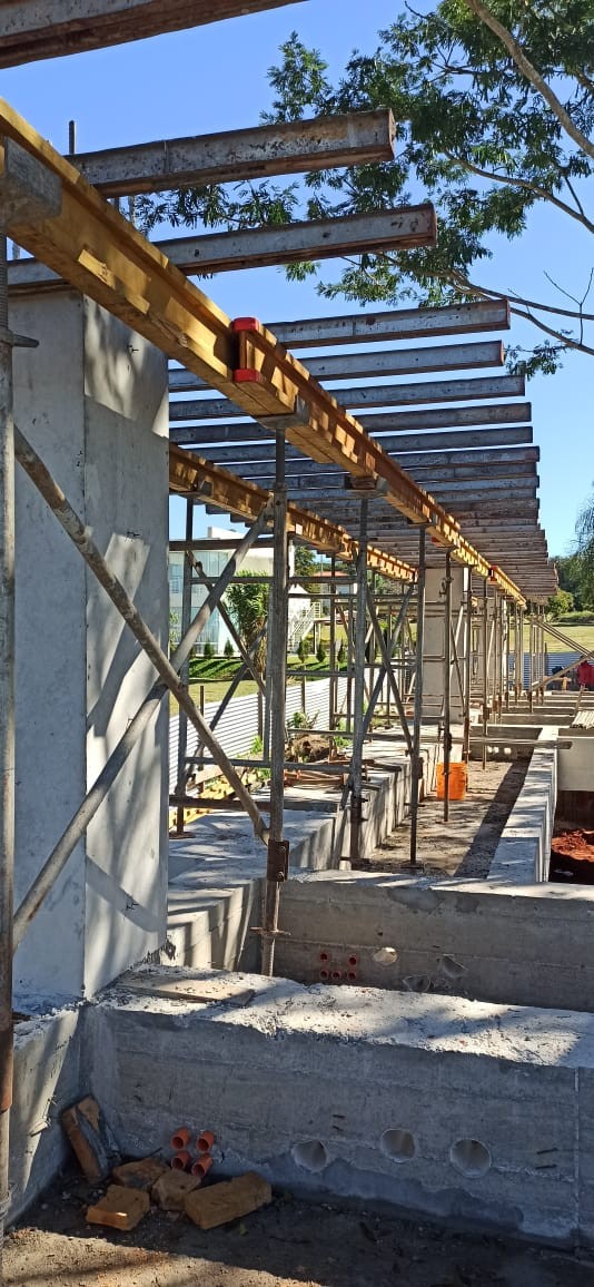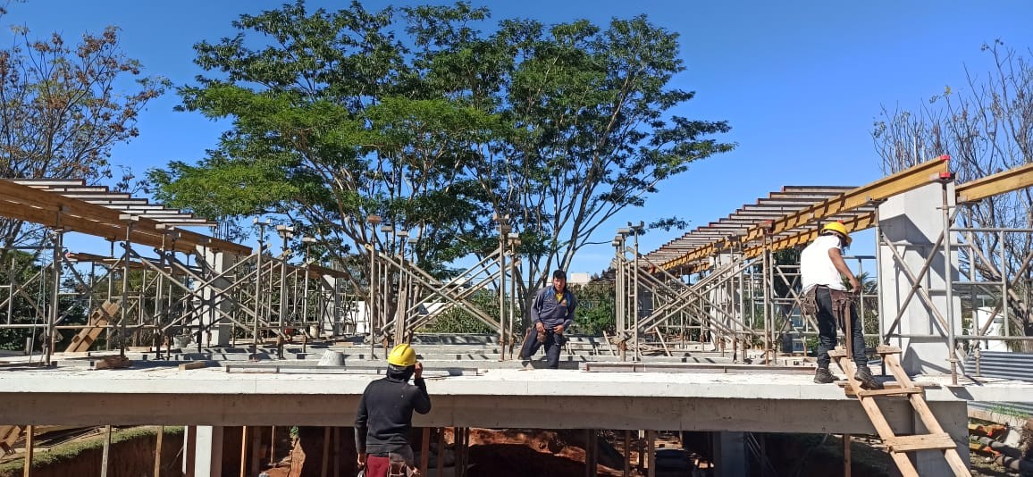En el mes de agosto del 2021 se realizó el cargamento de hormigón de las vigas del último nivel, se finalizaron los trabajos de mampostería de elevación en planta baja. Se iniciaron los muros de contención perimetral de piedra bruta colocada a la vista, se está trabajando en el drenaje del muro posterior con el sistema de dreno kananet.