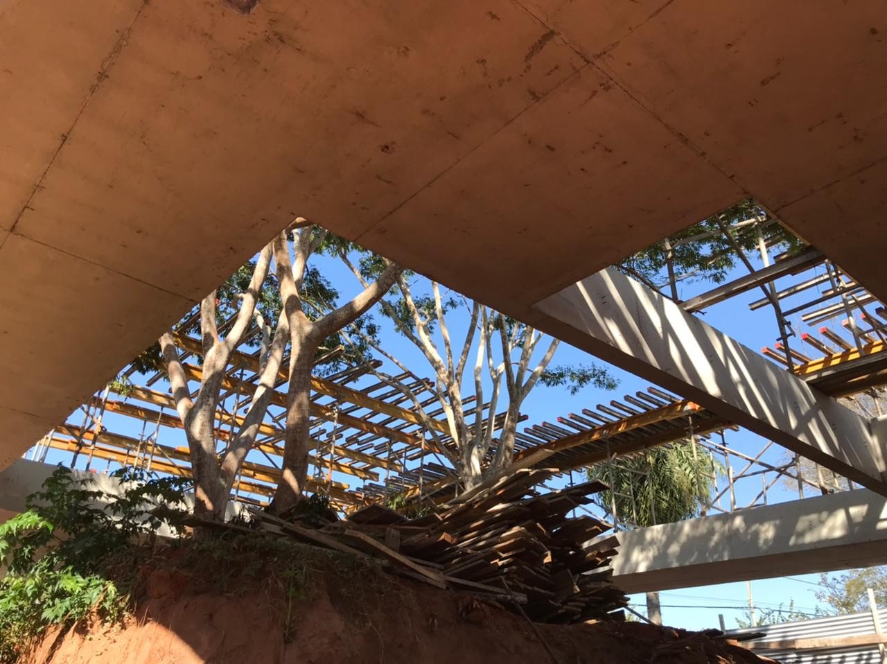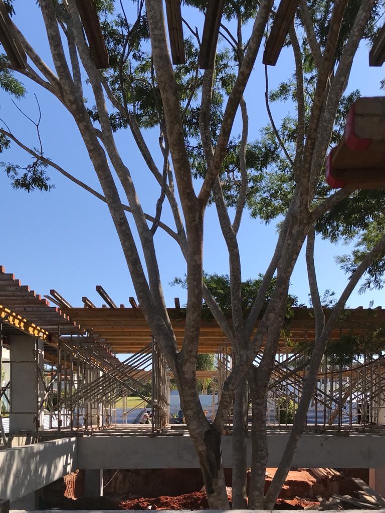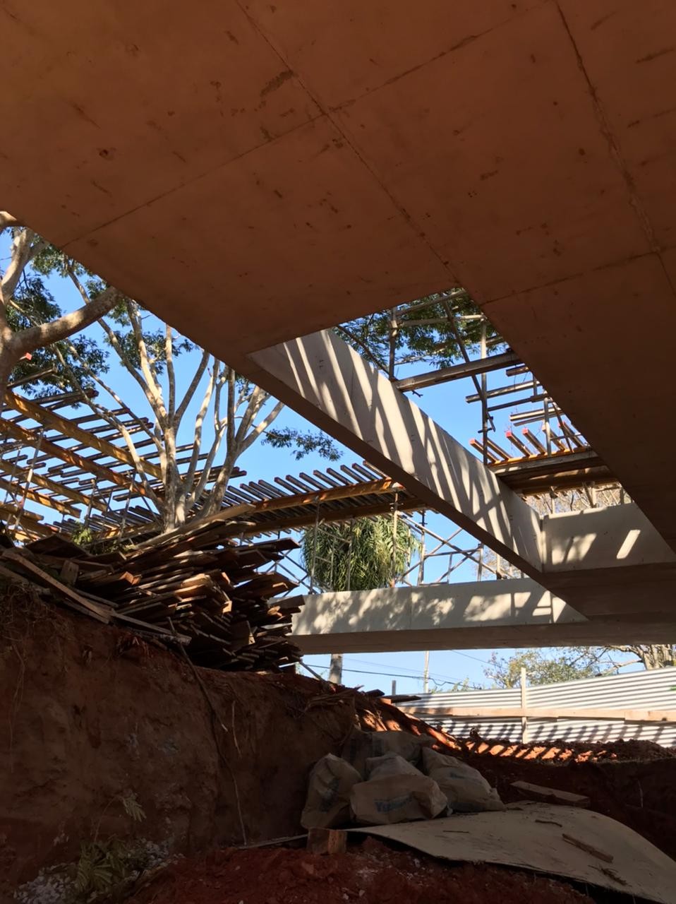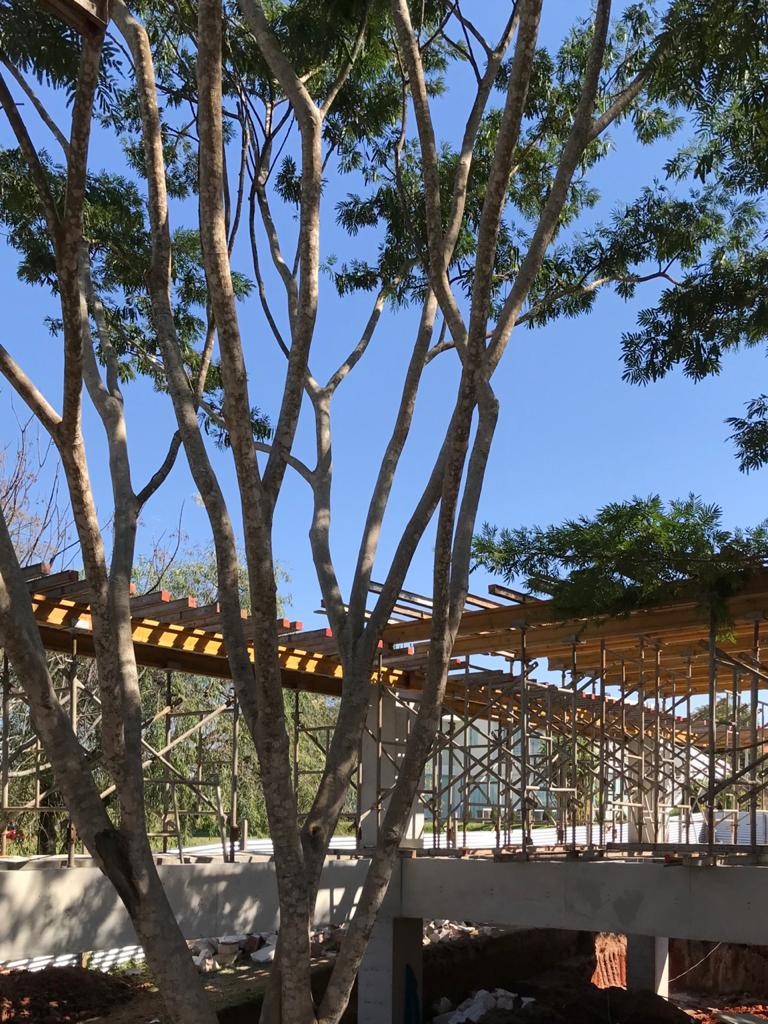 En el mes de agosto del 2021 se realizó el cargamento de hormigón de las vigas del último nivel, se finalizaron los trabajos de mampostería de elevación en planta baja. Se iniciaron los muros de contención perimetral de piedra bruta colocada a la vista, se está trabajando en el drenaje del muro posterior con el sistema de dreno kananet.