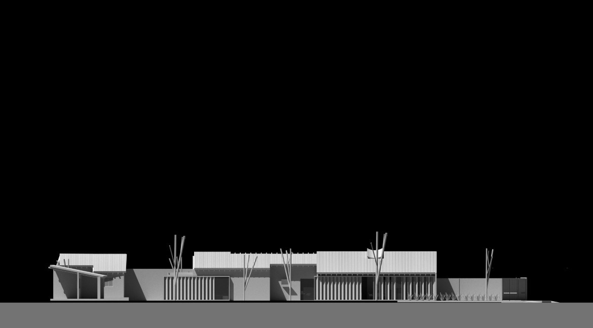 Fuelle Roga, alude formalmente al artefacto acordeónico que sirve para oxigenar y avivar el fuego hogareño. Un fuego traducido en espacios nuevos a partir de un pliegue de cascotes cerámicos de diferentes composiciones, en partes continuo y en partes interrumpido, para generar las interacciones entre la vivienda y su patio a lo largo de toda su fachada, permitiendo a la vez un interesante juego de luces y sombras, así como la ventilación natural deseada.
