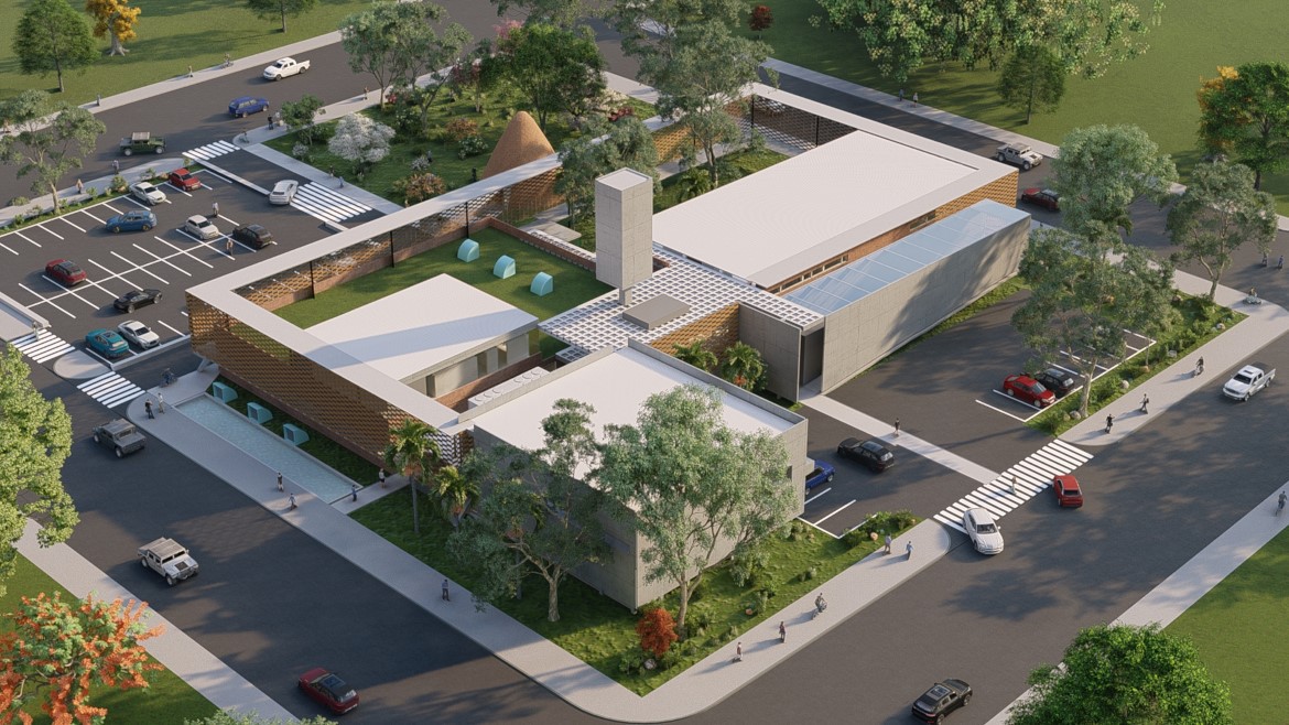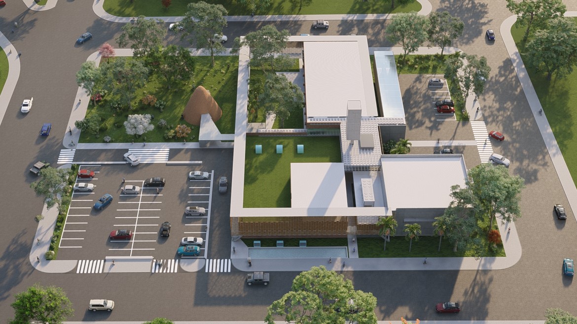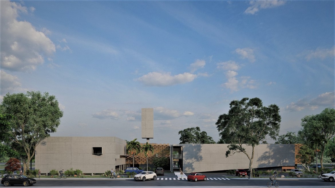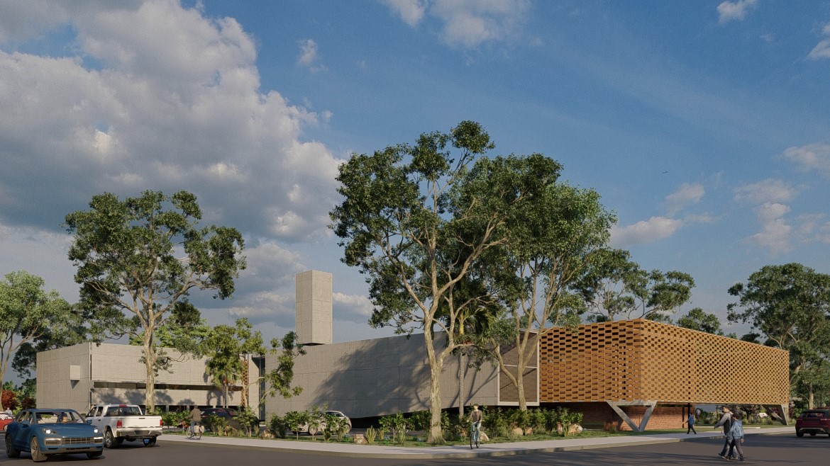 El hecho de lidiar constantemente con presupuestos ajustados, hace del arquitecto paraguayo un diseñador interesante a los ojos del mundo, despojado de irrelevancias y prejuicios, emplea ingeniosamente materiales simples que imprimen un sello característico a cada obra. En términos de lenguaje y fachada del edificio con relación a la ciudad, se plantea utilizar una piel permeable, compuesta de tejuelones cerámicos entretejidos con una estructura metálica liviana, capaz de envolver a los diferentes pabellones en un todo continuo de potente identidad y cohesión, aclarando su lectura dentro de la trama urbana y arraigándolo al contexto regional en el cual se inserta.